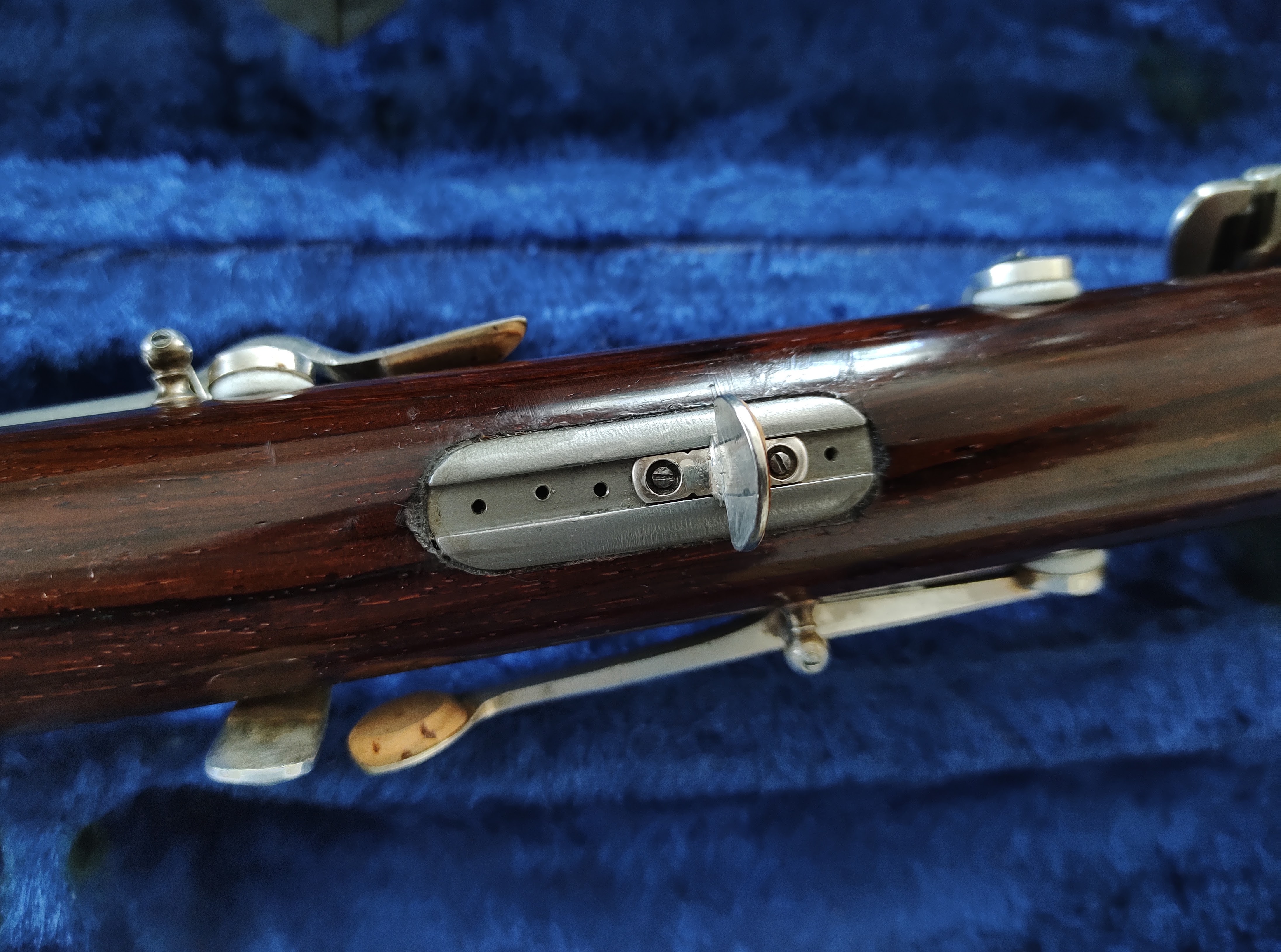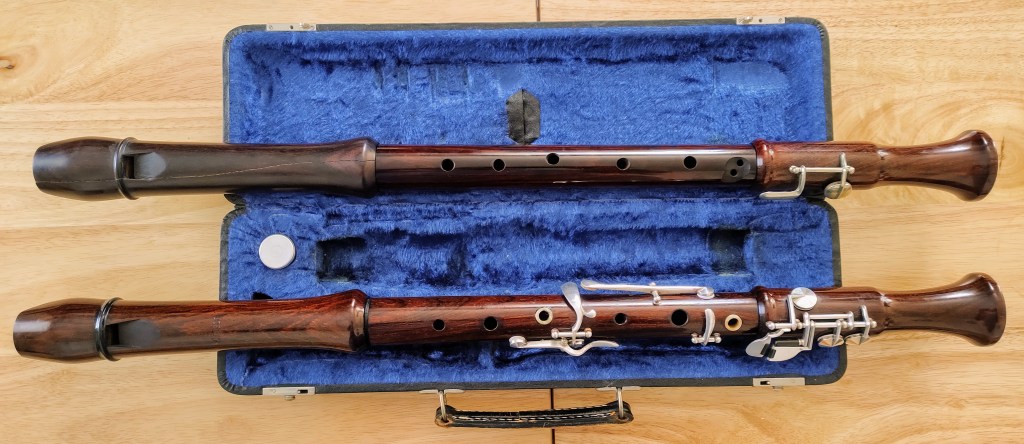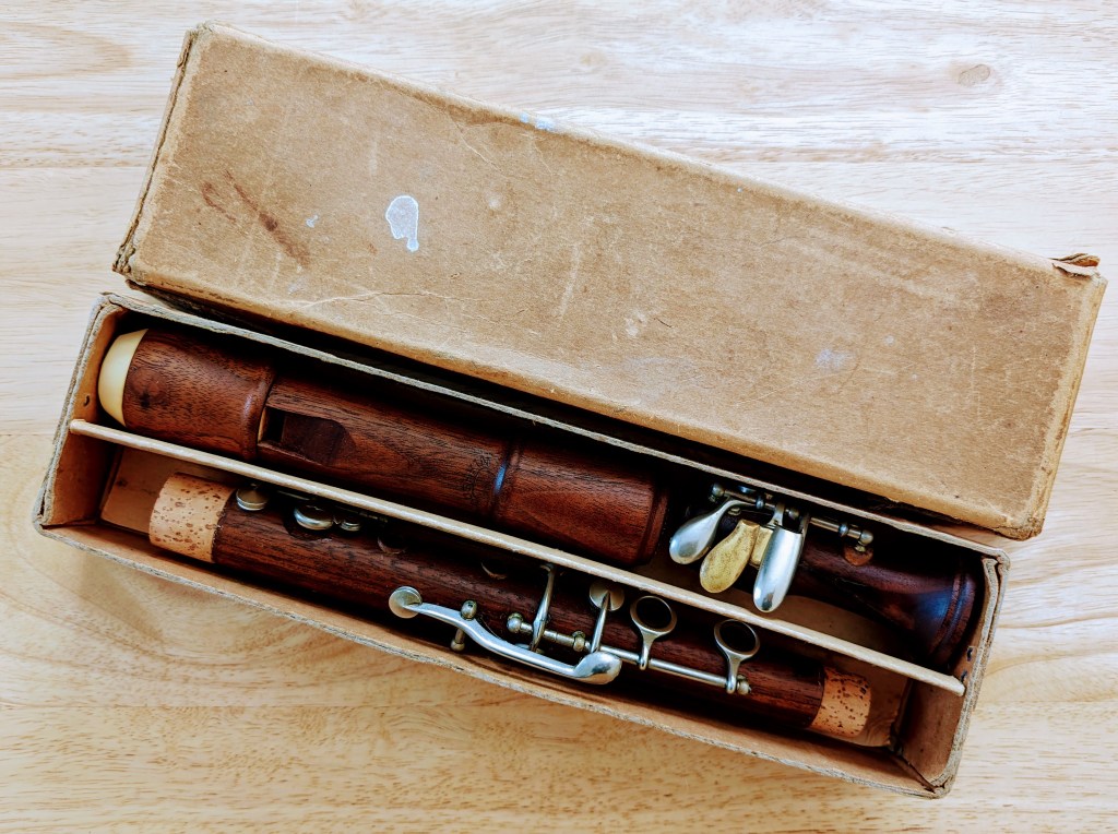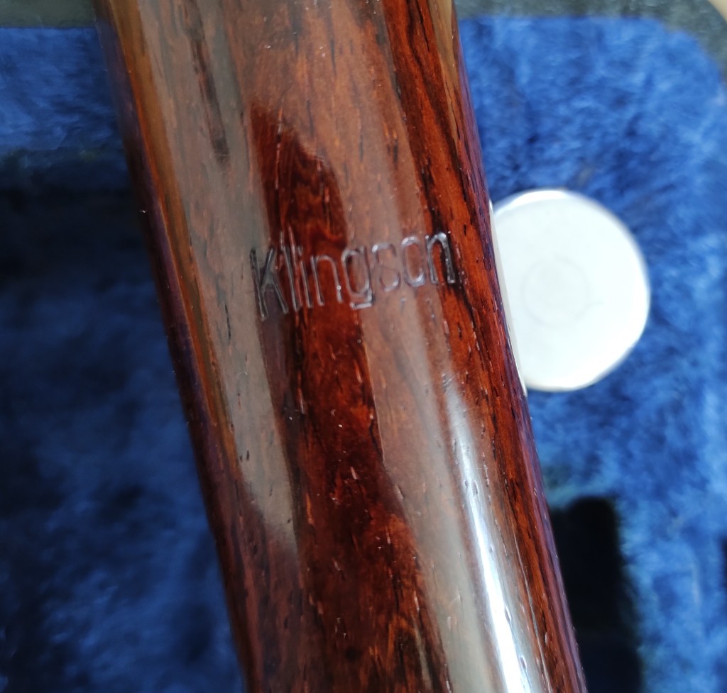 The night that I won the auction, the same seller listed another tenor recorder by the same maker. The headjoint and footjoint were shaped exactly the same and the wood looked the same. This time it was a "normal" one, and it had the name Klingson stamped on it. I knew I'd seen that name before, so after some quick research, I found Klingson was a brand name used by woodwind maker Karl Hammerschmidt. I could also see that the headjoint on this one seemed to be fine. Would that headjoint fit the keyed one, or were they possibly switched at some point? I decided I needed to try for that one as well. After waiting a week for the auction to end, I won that one too. Oddly, I was the only bidder. Normally a rosewood tenor would have a lot of interest.