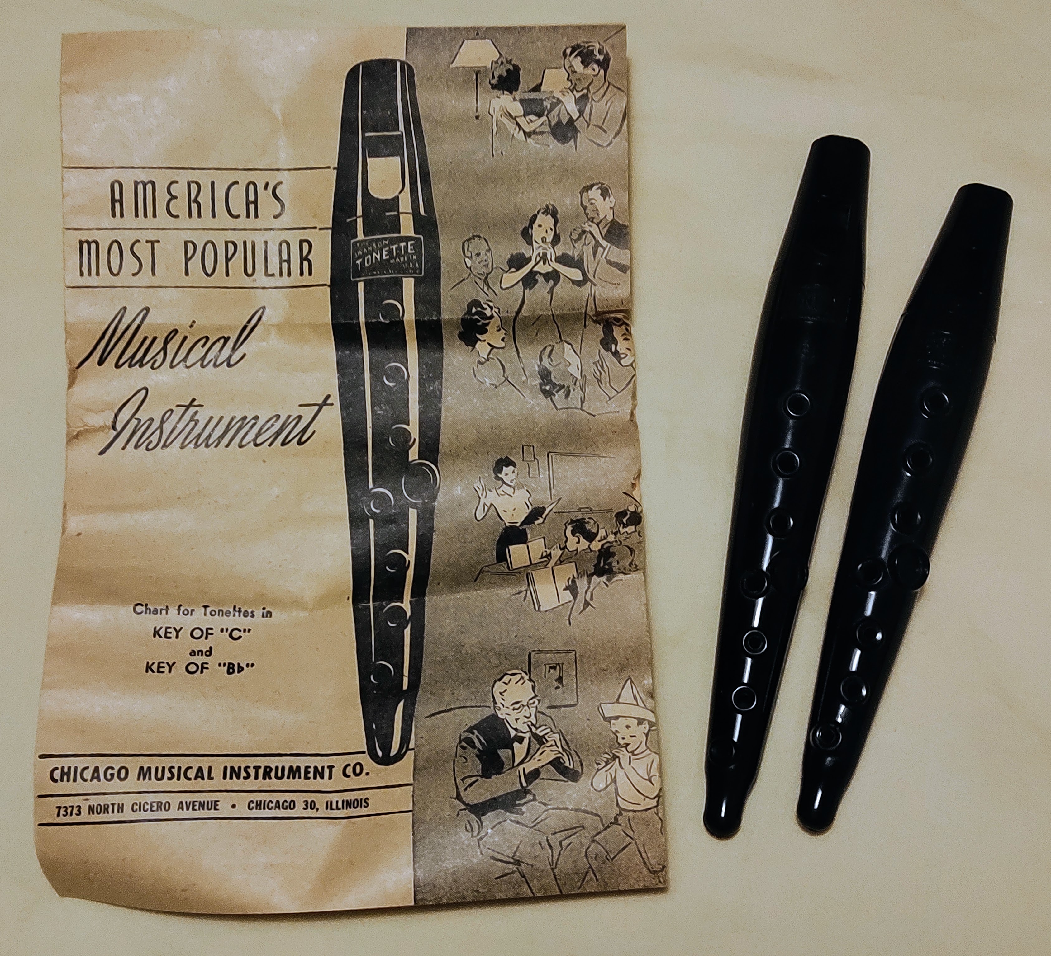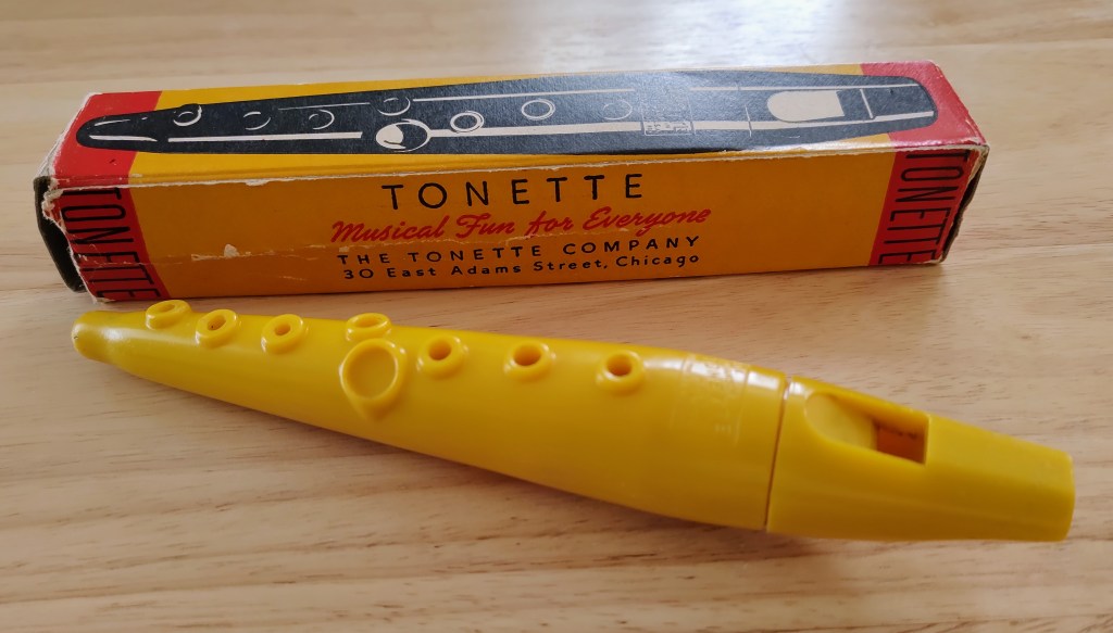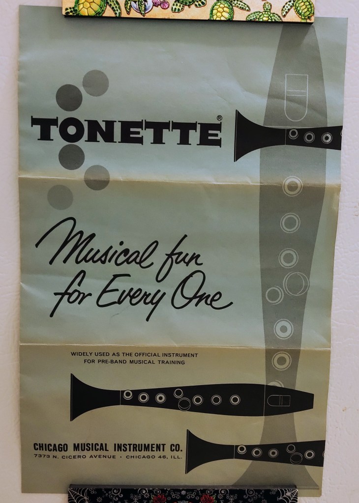 The tonette is what my elementary school used as an introduction to instrumental music. For me, it was 3rd Grade, 1977-ish. Nowadays, schools tend to use recorders or even ukuleles. Back in the day, some schools used flutophones or song flutes instead of tonettes. I'll talk a little bit about each of those in other posts.