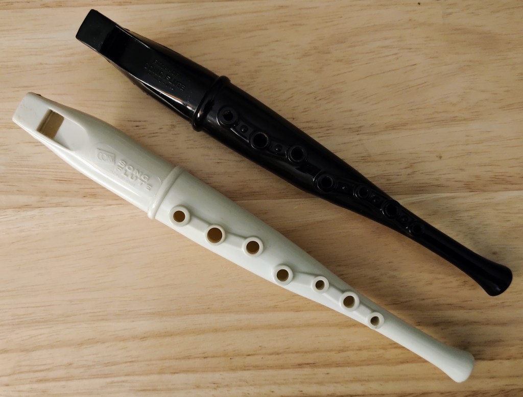 The Song Flute is very similar to the Tonette. There always seems to be some debate if the Song Flute is an ocarina or not. I say it is an ocarina. Unlike the Tonette, the Song Flute has a small opening in the "bell". But if you were to close that hole while playing, you still get a tone. So in essence, that hole acts like a tuning hole found on some clay ocarinas. If it were an open pipe, like a Flutophone, when you close off the end, you would get no sound.