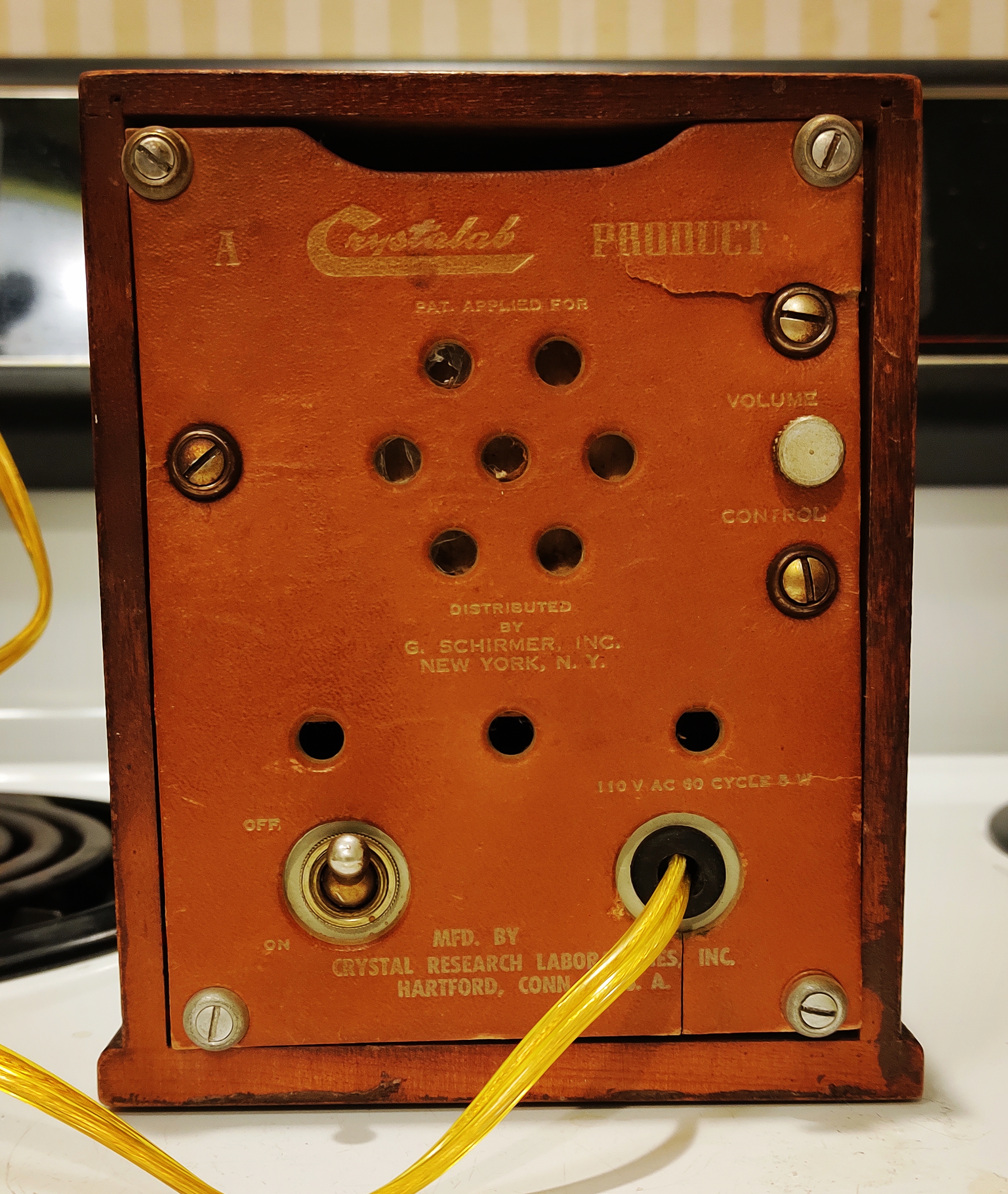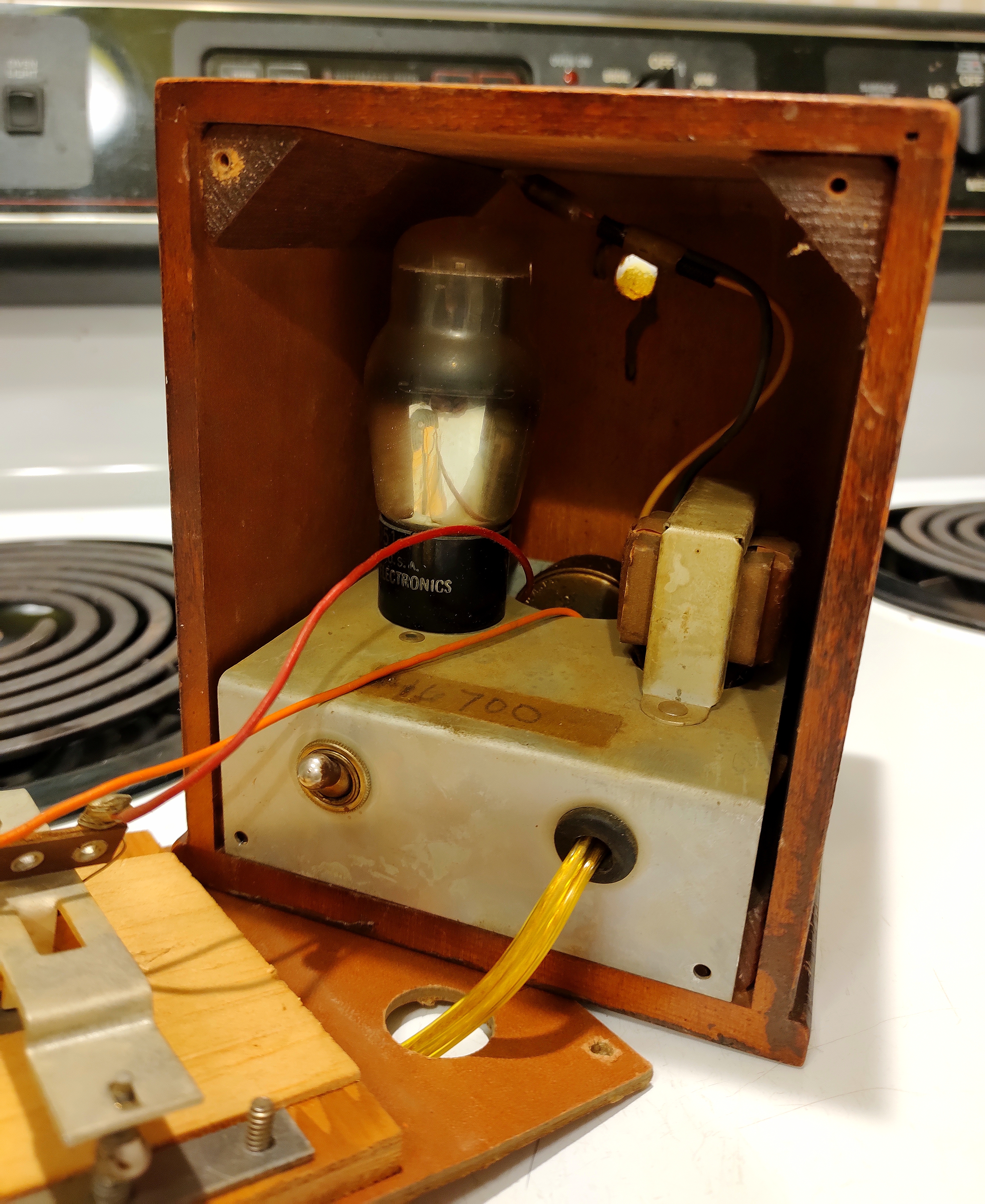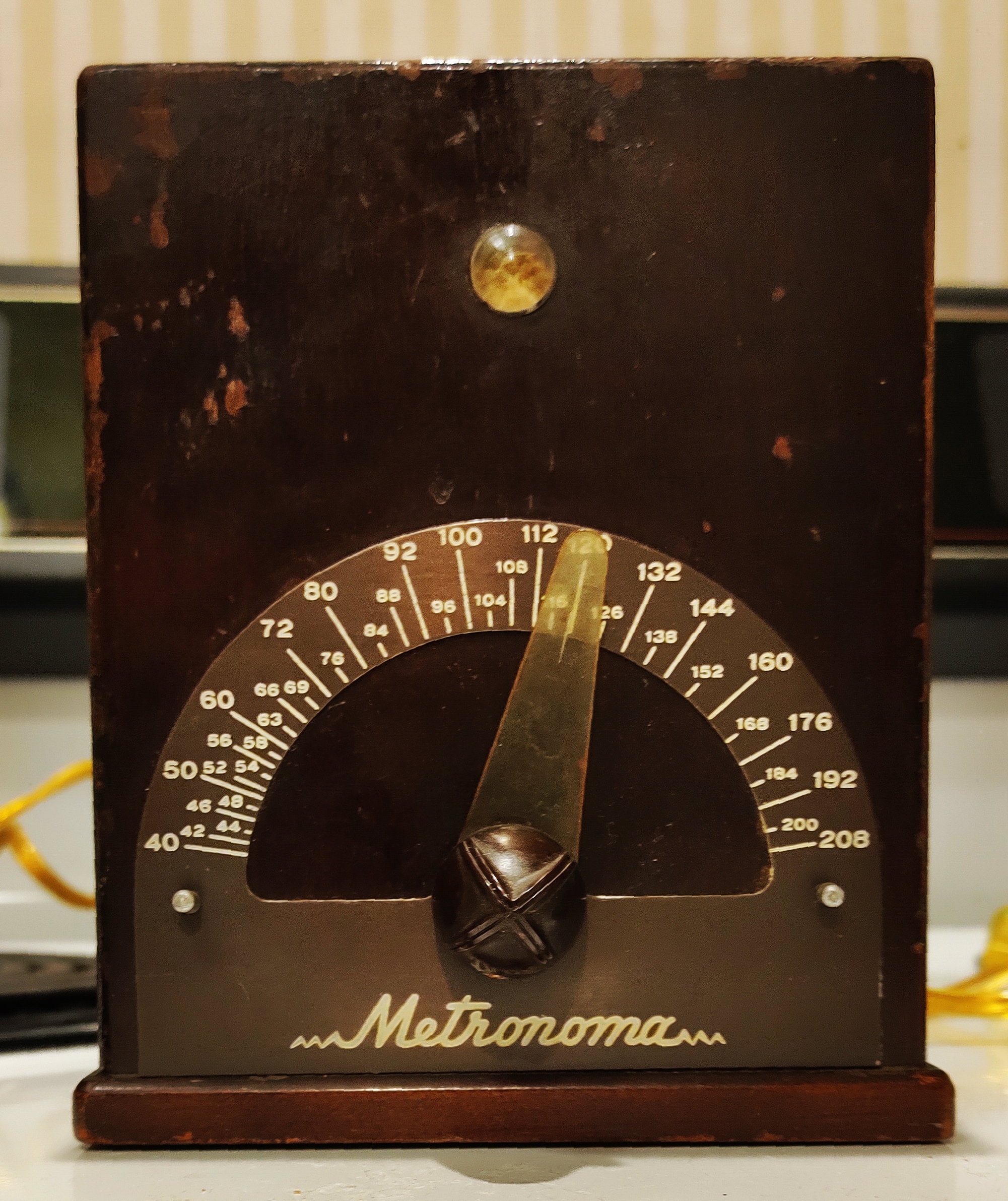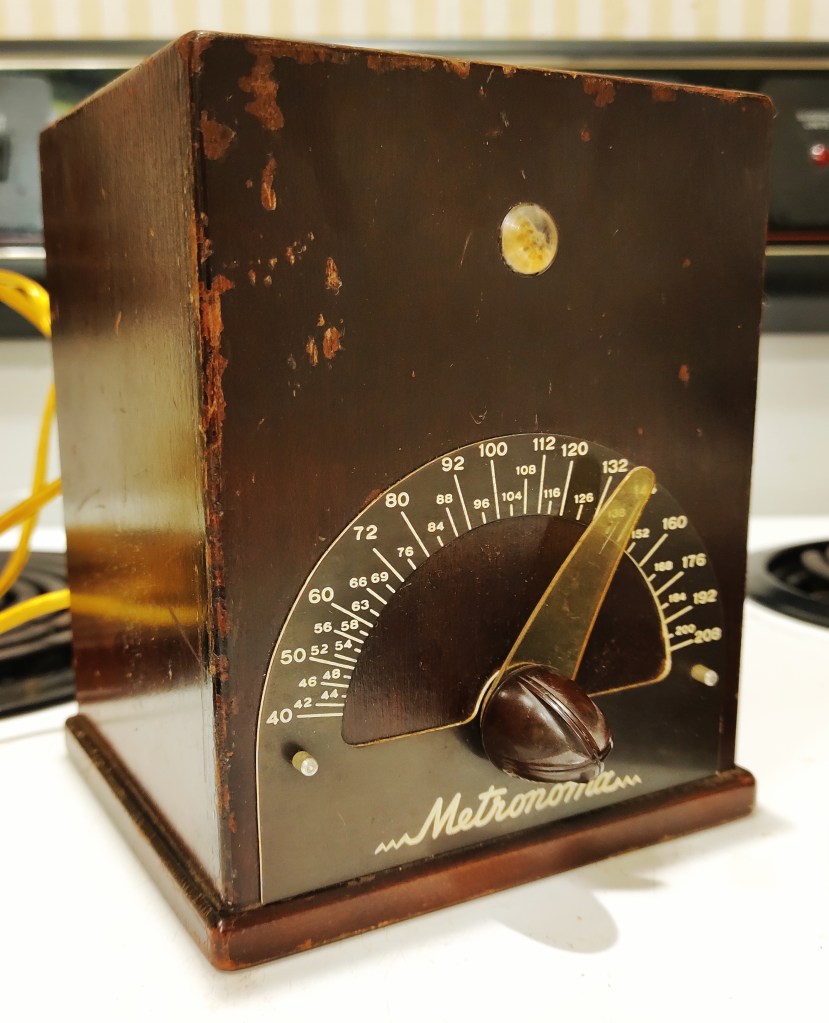 This Metronoma metronome arrived today. I have a small collection of metronomes of various vintages. This one was listed as "not working" so I got it pretty inexpensively. The listing said it needed a new vacuum tube and a new light bulb, but I was pleasantly surprised to find that it works fine. The vacuum tube seems fine, and the bulb was dislocated and just needed to be secured back into place. The seller had even just replaced the electrical cord.