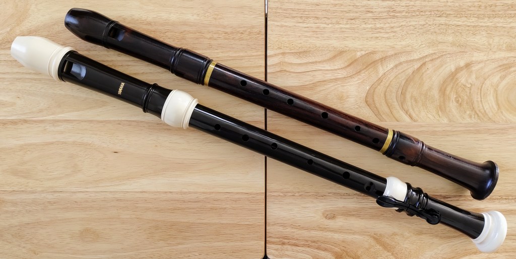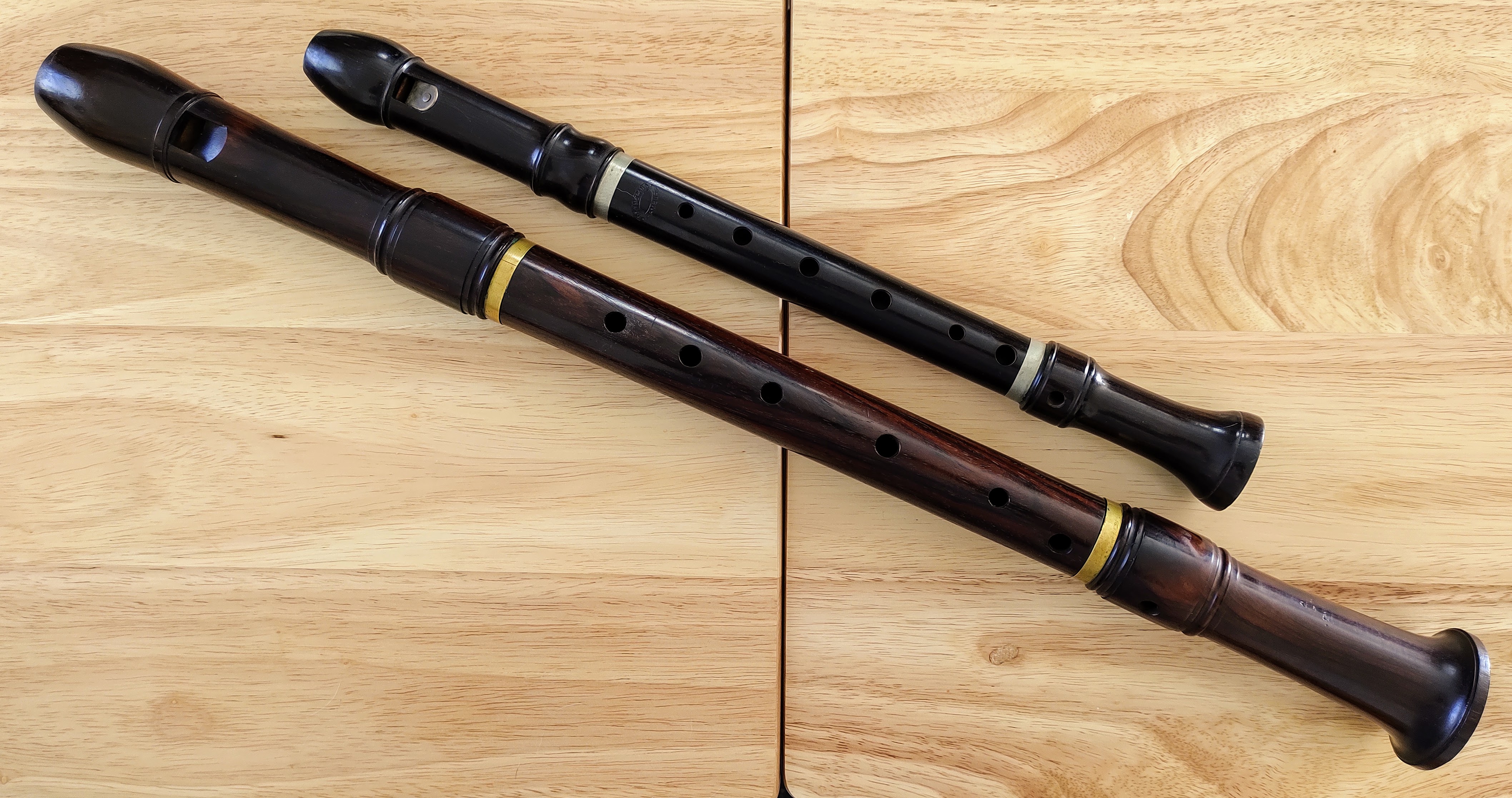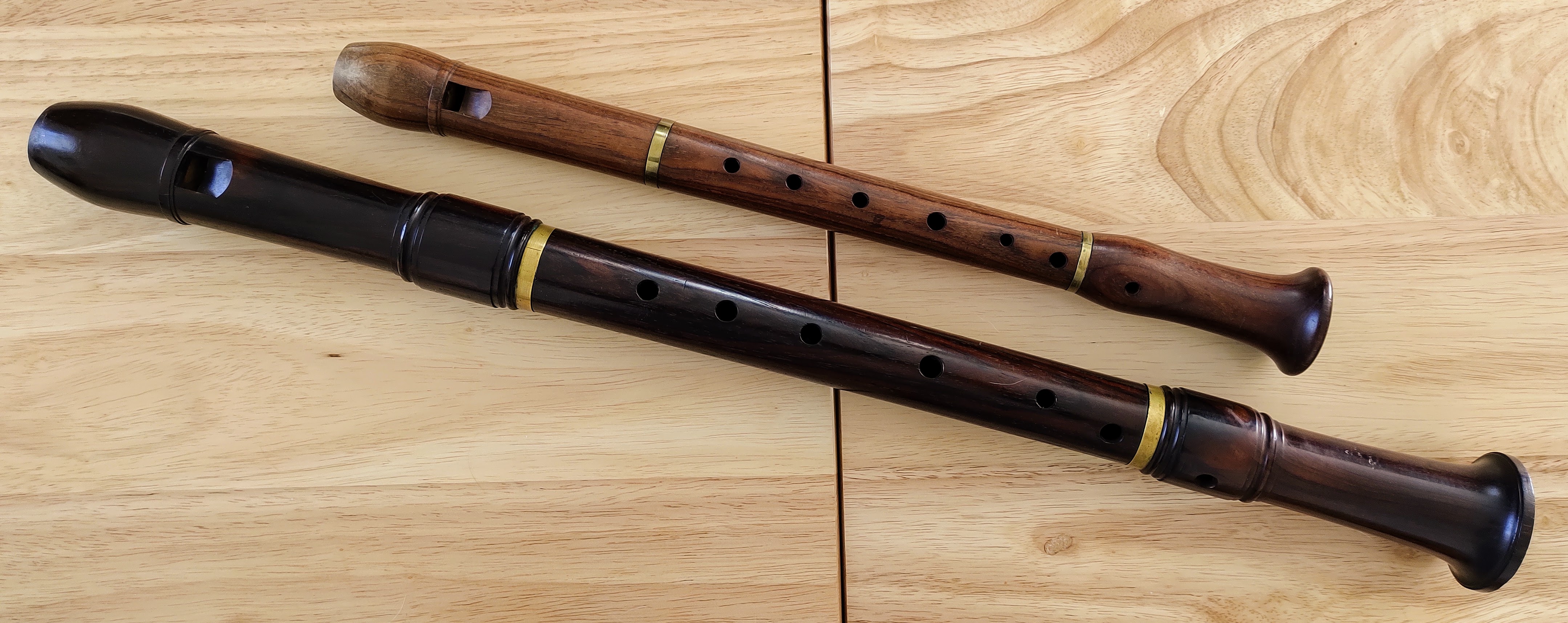Two Peter Harlan recorders, Soprano in A (top) and Tenor in D (bottom)